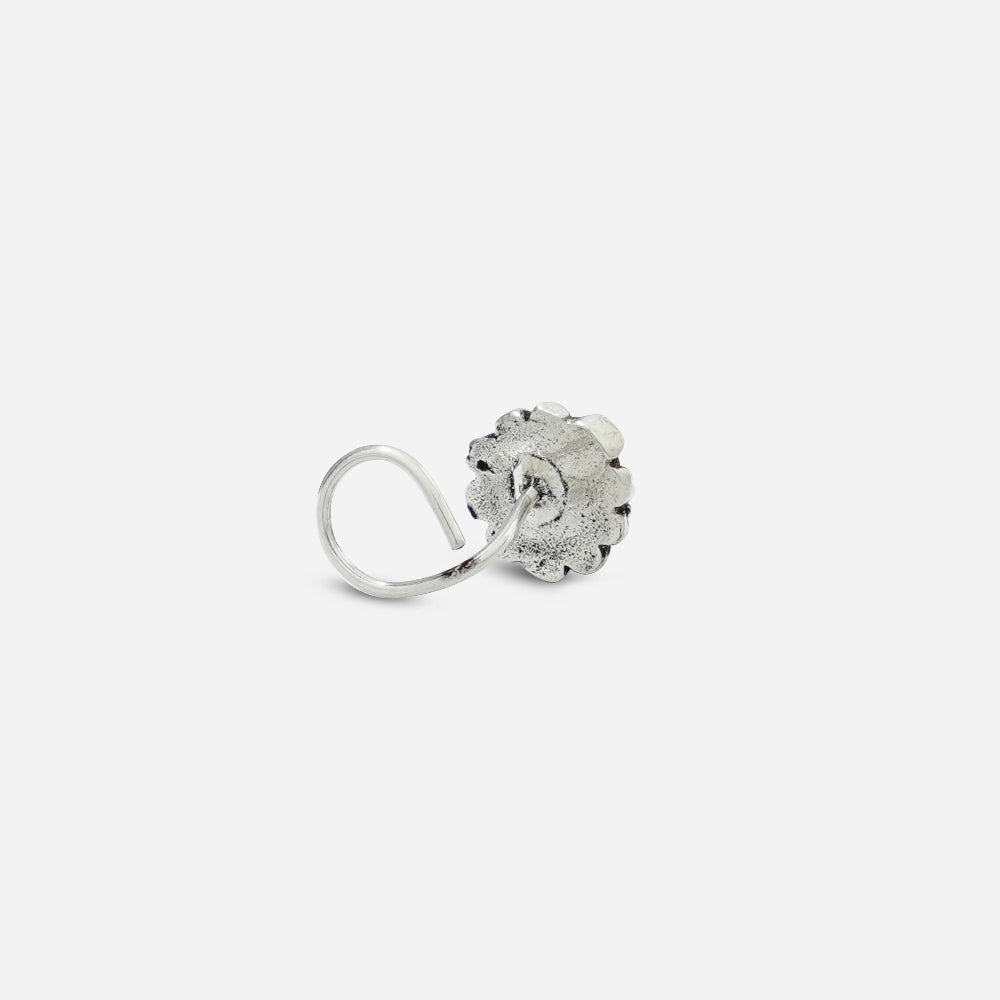 This nose pin is a celebration of free-spirited, bohemian style. Crafted from genuine 925 sterling silver, its unique design features a stylized flower motif with a rich oxidised finish that highlights its intricate details. The slightly asymmetrical, abstract petal adds a touch of artistic flair, giving the nose pin a distinctive, handmade feel. This piece is perfect for those who love jewelry with character and a touch of effortless, vintage charm.