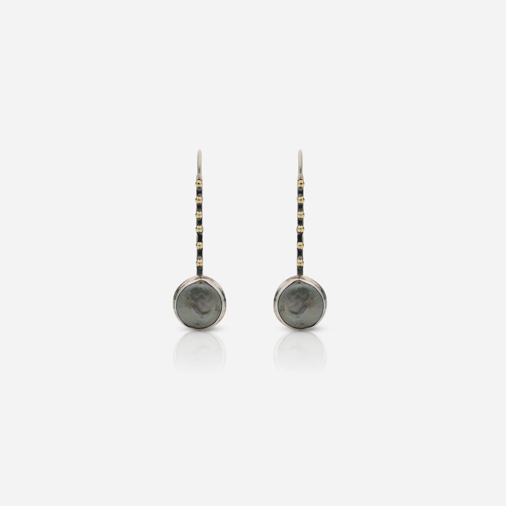 Silverworld Women 925 Silver Gray Button Pearl Dangler Earrings - Handcrafted Heritage Gold Bead Hooks