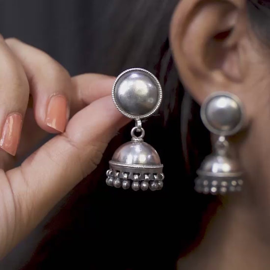 Inspired by the pure, unadorned elegance of traditional silver metalwork, these Plain Heritage Jhumkas celebrate the beauty of form and luster. Handcrafted in high-quality 925 silver, the sleek dome silhouette reflects light with a brilliant mirror finish, leading down to a delicate fringe of silver beads. This minimalist "Modern Heirloom" is a tribute to the enduring soul of Indian craftsmanship.