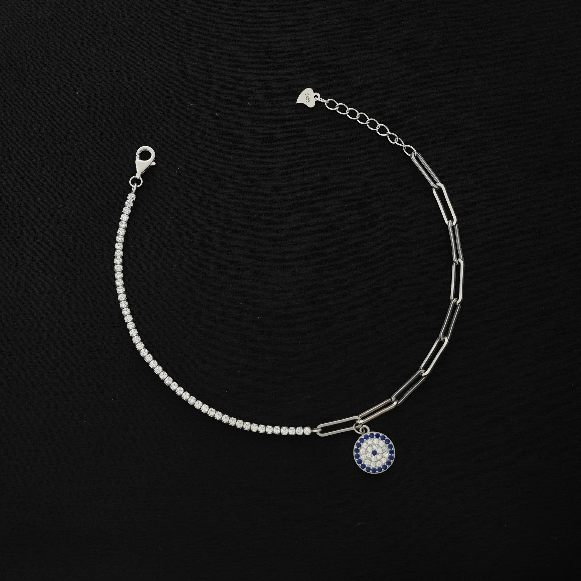 Design: Minimalist chain bracelet featuring a round protective evil eye motif